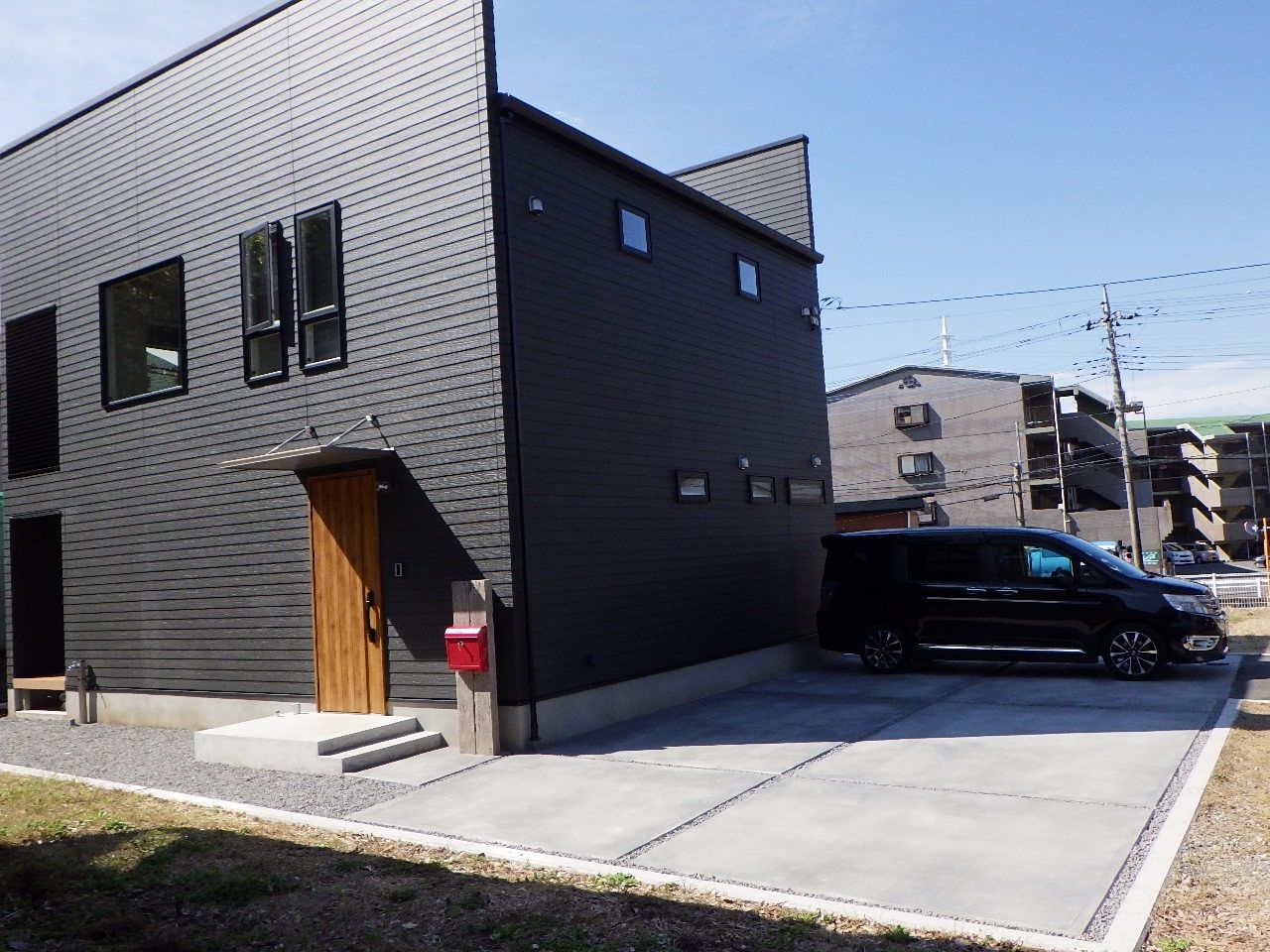 今回は生活環境に視点を置き、駐車場土間コンクリート・擬木デザインポスト・化粧砕石
