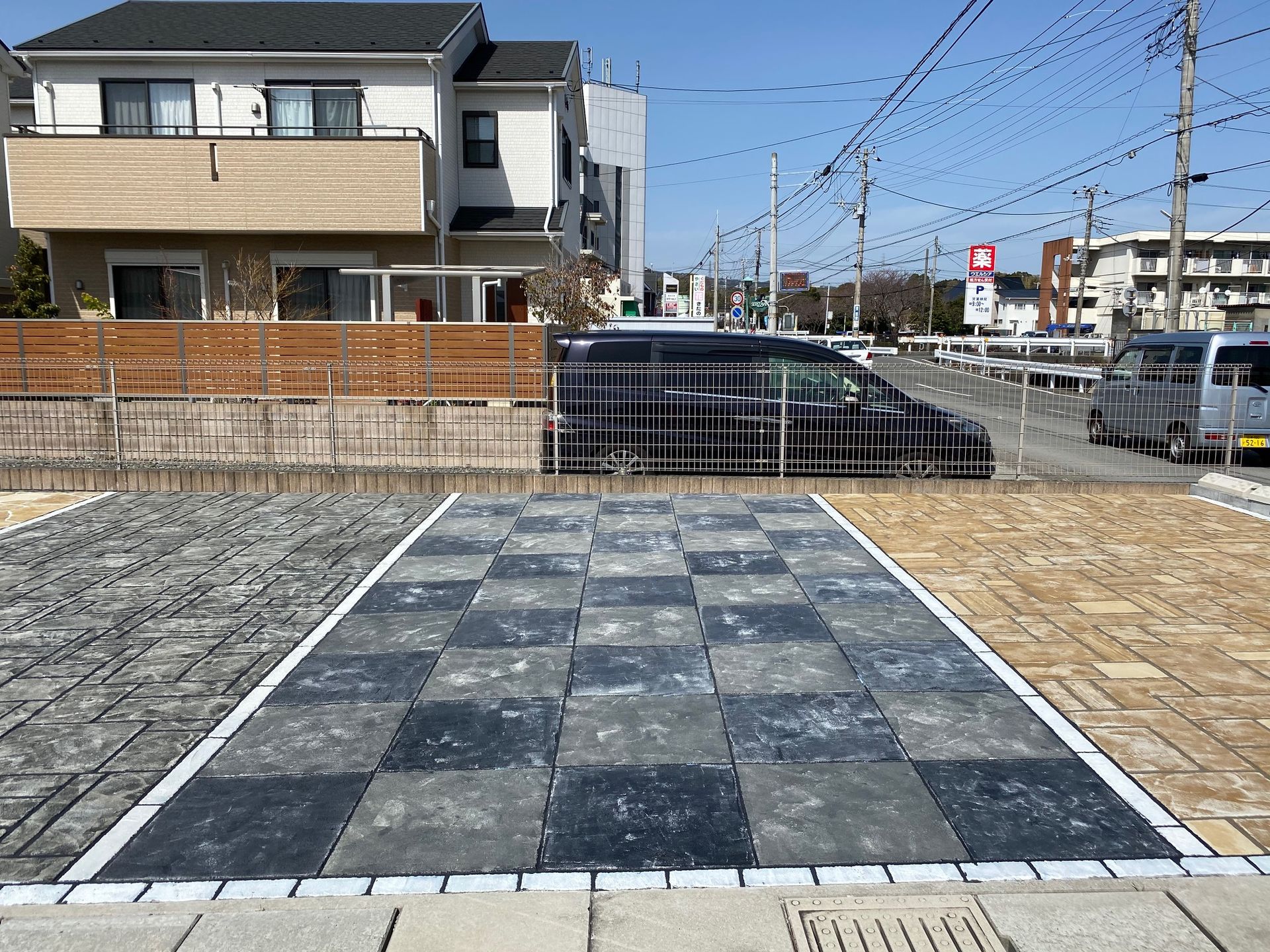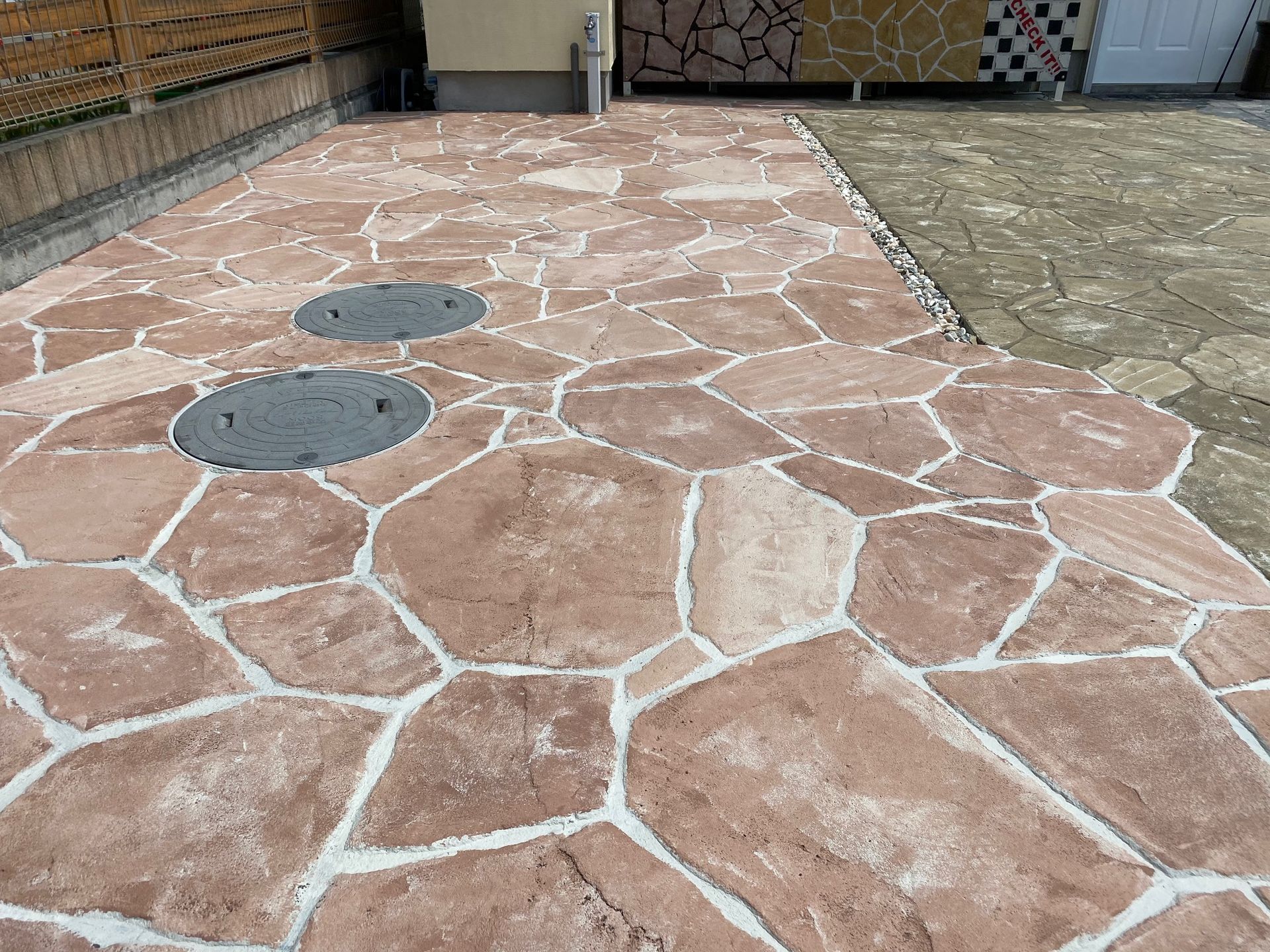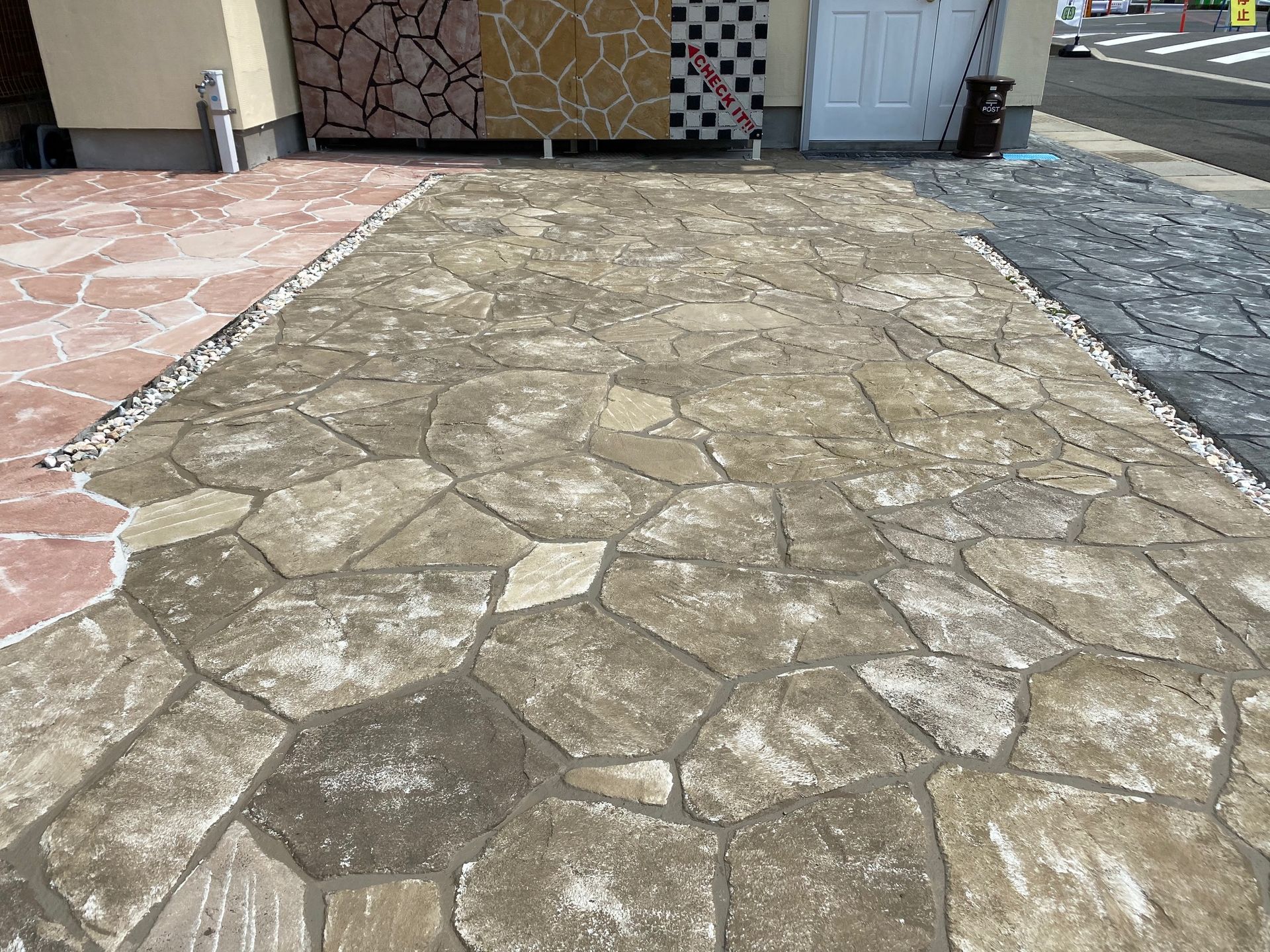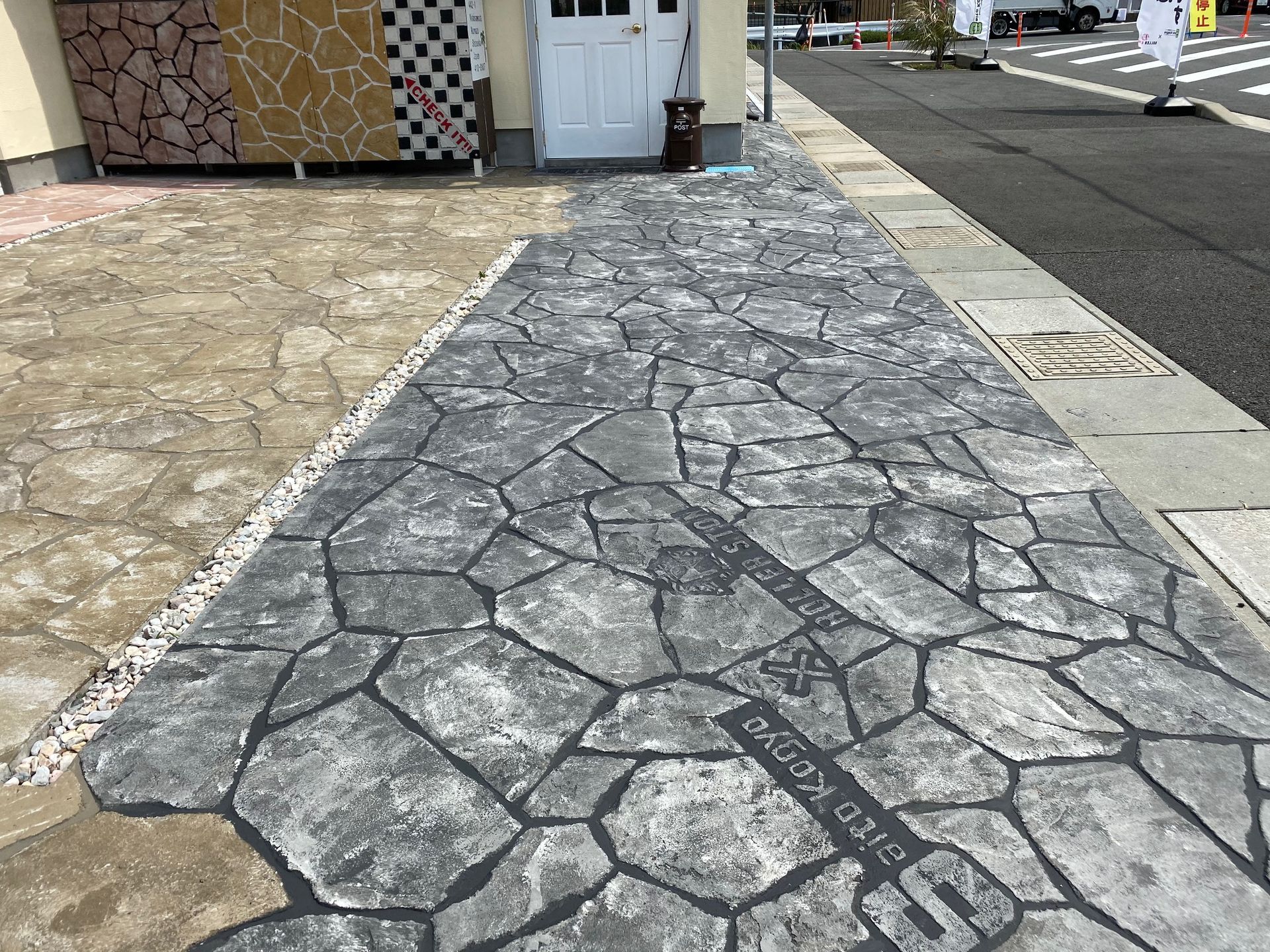 弊社お客様駐車場にローラーストーンのサンプルを施工しました。