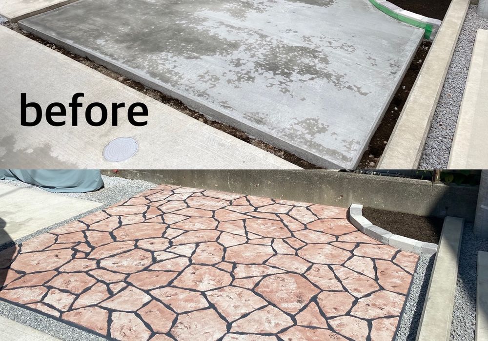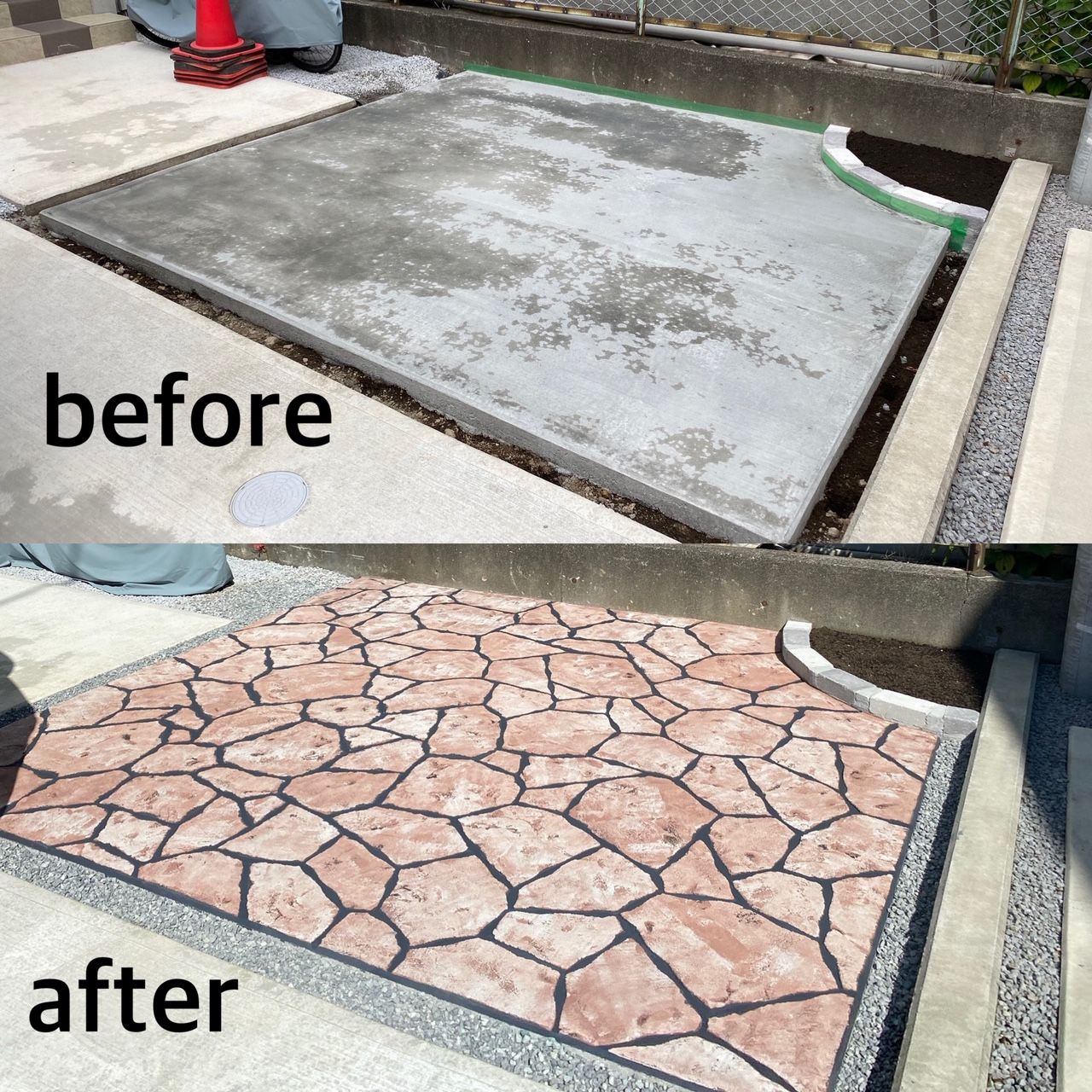 砂利の状態だったデッドスペースに花壇と床映えローラーストーンを施工させて頂きました。